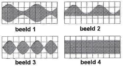 Het uitgangssignaal wordt zichtbaar gemaakt op een oscilloscoop.