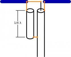 Dit is een kwart golf stuk van dezelfde soort coaxkabel als de voedingslijn waarvan de alleen de mantel is aangesloten met boven een verbinding met de dipoolhelft die aan de kern van de voedingslijn is aangesloten en onder (een 1/4 golflengte verder) aan de buitenmantel van de voedingslijn is aangesloten.