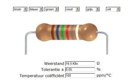 16,5K metaalfilm 0.05%:bruin-blauw-groen-rood-(grijs)-{wit}