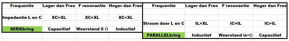 Onafhankelijk van de waarden van de onderdelen geldt bij resonantie: