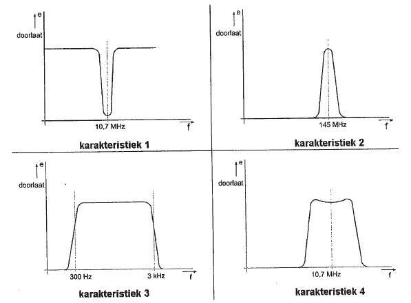 Welke frequentiekarakteristiek behoort bij de middenfrequent versterker van een 2-meter band ontvanger?