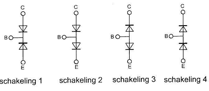 De "Oervorm" van een PNP-transistor is de "twee-dioden" schakeling in schakeling 1