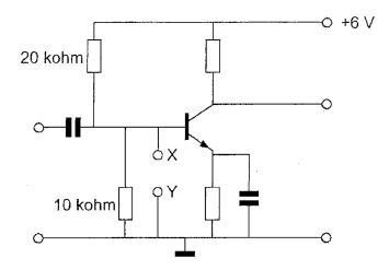 Een frequentieverdrievoudiger met één transistor wordt gestuurd met een 10 MHz-signaal.