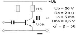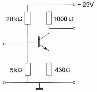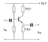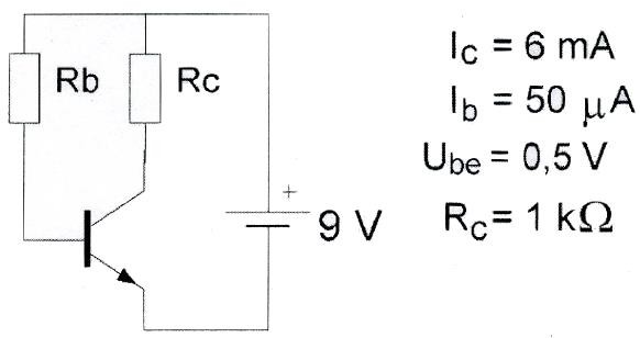 Over de Emittor is de spanning Ub-Uce = 5-0.7 = 4.3 V