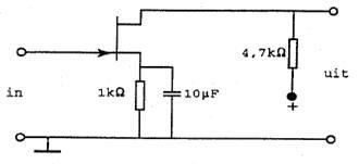 b hoge ingangsimpedantie en hoge uitgangsimpedantie