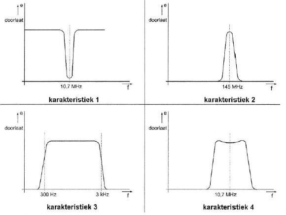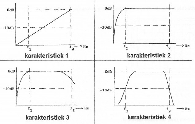 Een versterker heeft de gegeven amplitude/frequentie-karakteristiek.