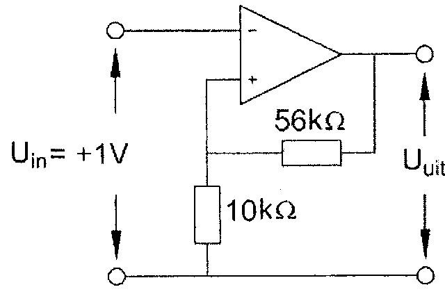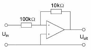 c de vorm van de uitgangsspanning is gelijk aan die van de ingangsspanning