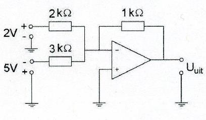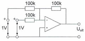 De uitgangsspanning Uuit van de schakeling met een SI-transistor is ongeveer