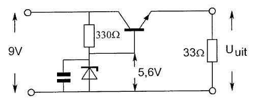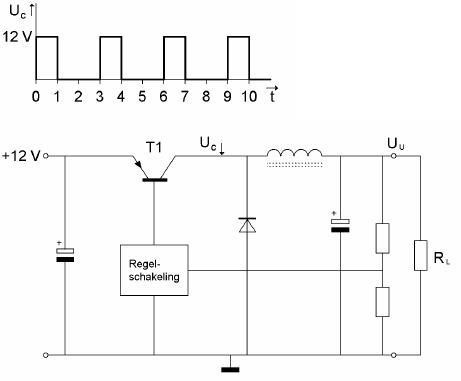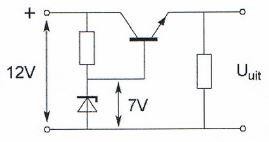 De uitgangsspanning Uuit van de sc hakeling met een slilicium transistoris ongeveer