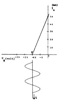 Een buis (triode) is ingesteld in het werkpunt P.