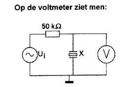Als f heel langzaam van 6,99 naar 7,01 MHz wordt veranderd, is op de voltmeter V te zien dat het kristal resoneert.
