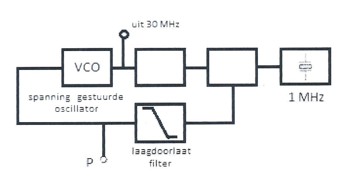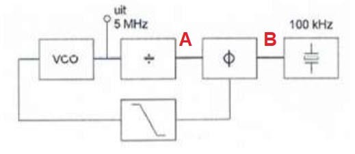 Bij een PLL in gelocked toestand zijn de frequenties op punt A en B gelijk en moet dus punt A ook 100kHz zijn.