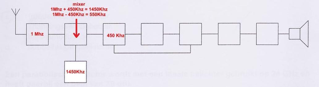 Bij een superheterodyne-ontvanger wordt gebruik gemaakt van een mengoscillator. Het verkregen MF ontstaat door: Ontvangfrequentie - Oscillatorfrequentie of Oscillatorfrequentie - Ontvangfrequentie