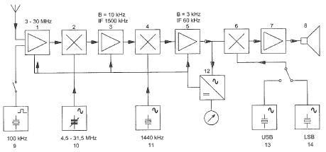 62 http://www.iwab.nu/H4-138.html Als de detectieschakeling met BFO wordt meegeteld dan heeft een enkelvoudige superheterodyne-ontvanger: