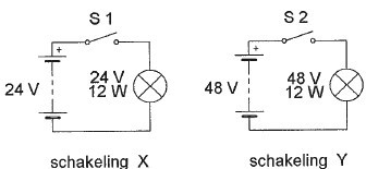 De schakelaars S1 en S2 worden gelijktijdig gesloten.