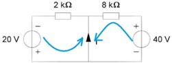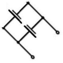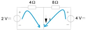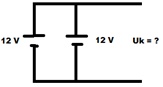 Twee gelijke spanningsbronnen worden in gelijke richting parallel geschakeld.
