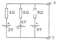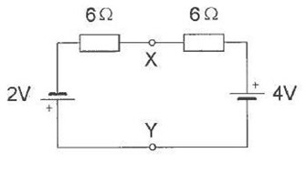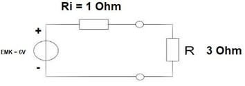 Een accu heeft een inwendige weerstand van 1 ohm en een bronspanning (EMK) van 6 volt.