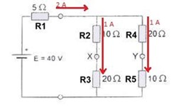 R2 is 2x groter dan R1, dus zal de stroom door R2 de helft zijn.