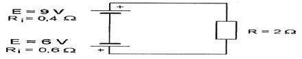 Een batterij heeft een bronspanning (EMK) van 62 Volt en een inwendige weerstand van 2Ω.