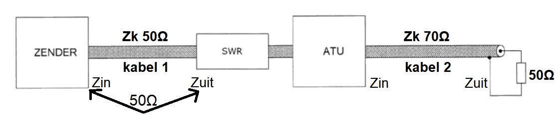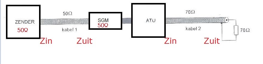 a uitgangsimpedantie van de zendontvanger 50 Ω is