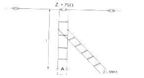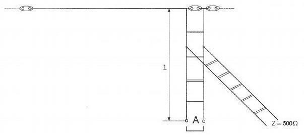 Een halvegolf gevouwen dipoolantenne voor de 40-meterband wordt gevoed door een lintlijn met een karakteristieke impedantie van 300 Ohm
