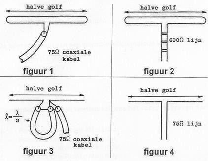 c een gevouwen dipool van 300 Ohm aan een coaxkabel van 75 Ohm aan te passen