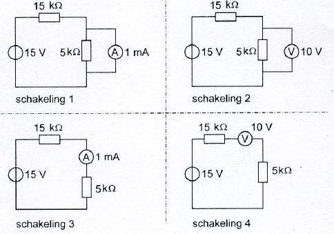In een voltmeter wordt gebruik gemaakt van een instrument dat bij 1 mA volle uitslag vertoont