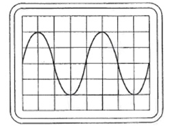 Een wisselspanning is aangesloten op een oscilloscoop met een verticale gevoeligheid van 10 volt per schaaldeel.
