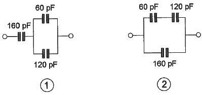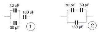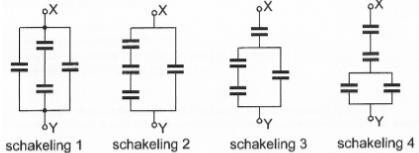 In welke schakeling is de capaciteit tussen x en y kleiner dan 3 µF?