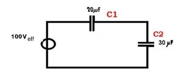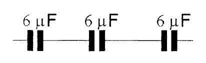 Alle condensatoren hebben een capaciteit van 6 µF.