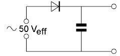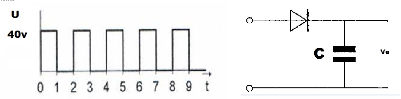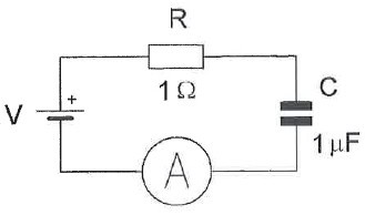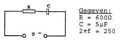 Op de schakeling wordt een blokvormige spanning aangesloten.