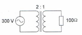 Een ideale transformator heeft primair 500 windingen en secundair 100 windingen.