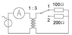 Twee ideale transformatoren worden geschakeld als aangegeven.