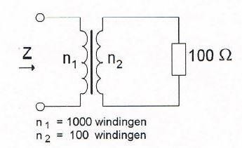 Een dipoolantenne met een impedantie van 300 Ω, wordt dmv een trafo aangesloten op een kabel van 75 Ω.