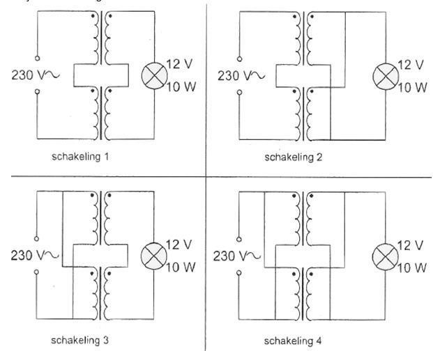 De primaire wikkeling van een transformator is aangesloten op een wisselspanning van 230 volt.