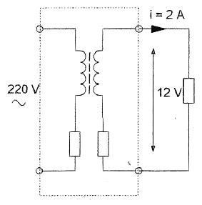 secundair = 12 V / 12 Ω = 1 A >>>>> P = U*I = 12*1= 12 W