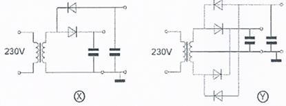 Umax = 30 V dwz Ueff = 21V die de diodes mogen hebben !!!