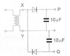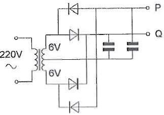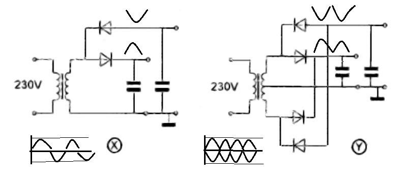 Ueff over de twee dioden is 300 x 0.707 = 212 V