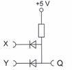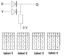 5V 0V 0V De 5V loopt dan via de diode Y weg en geen 5V op Q