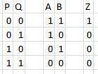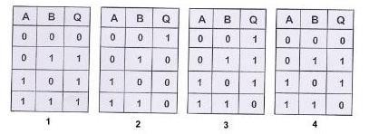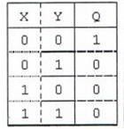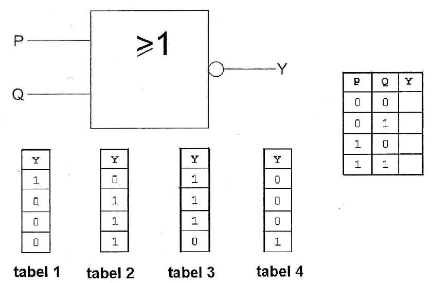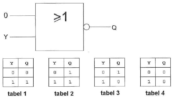 De waarheidstabel, waarin Q de uitgang is, behoort bij een