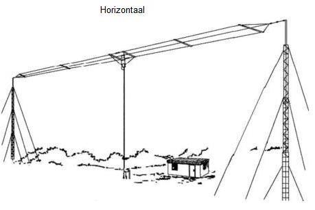 Ook die hoogte zullen de meeste zendamateurs in NL niet halen maar de horizontale draad is toch het meest praktisch om toe te passen.