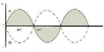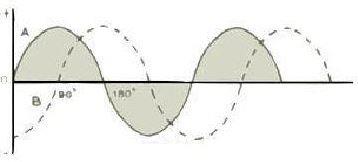 Als de ene golf zijn maximum bereikt, is de andere nul en omgekeerd.