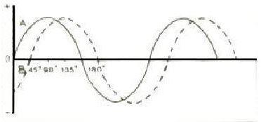 In de figuur ijlt stroom A 45graden voor op stroom B.