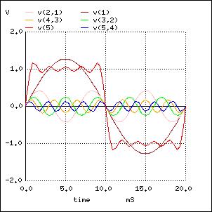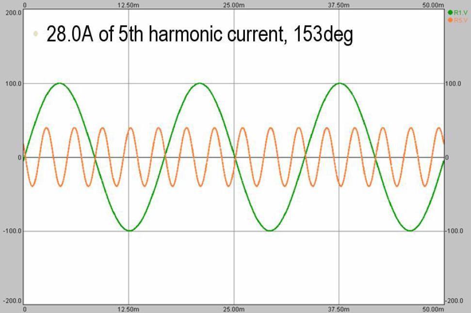 Een 5de harmonische f=250Hz met een amplitude die 85% tov de grondgolf.