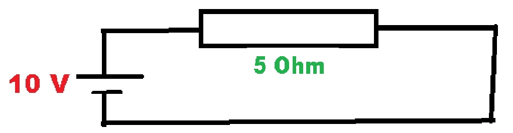 I = U / R = 10 / 5 = 2 A
