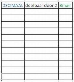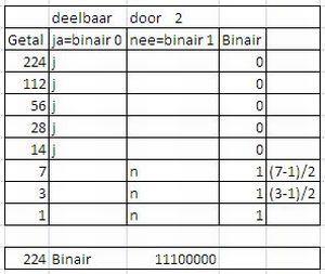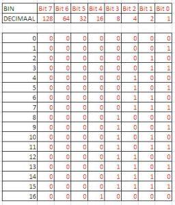 Gebruik bovenstaande tabel en tel de overeenkomstige decimale getallen op.