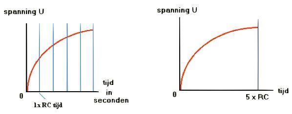 We zeggen dat de C geladen is in 5x de RC-tijd.
