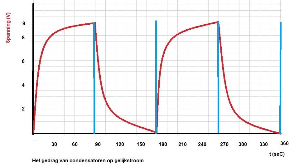 Voor wisselspanning geldt dit, omdat het laden en ontladen vertragend werkt.