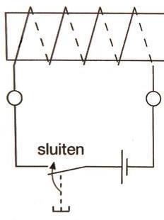 Als er door de spoel een gelijkstroom wordt gestuurd, dan ontstaat er een magnetisch veld