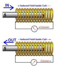 Met een magneet is de inductie tegengesteld aan de magneet richting.